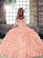 Floor Length Red Girls Pageant Dresses Tulle Sleeveless Beading and Ruffles