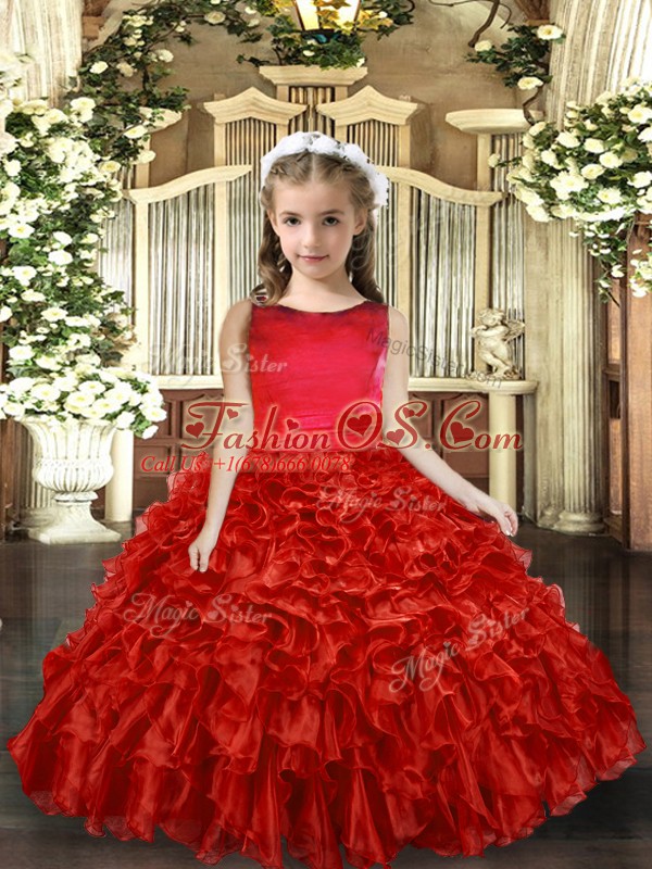 Floor Length Red Pageant Gowns For Girls Scoop Sleeveless Backless