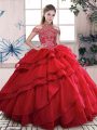 Floor Length Red Quinceanera Dresses Organza Sleeveless Beading and Ruffled Layers
