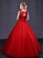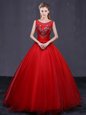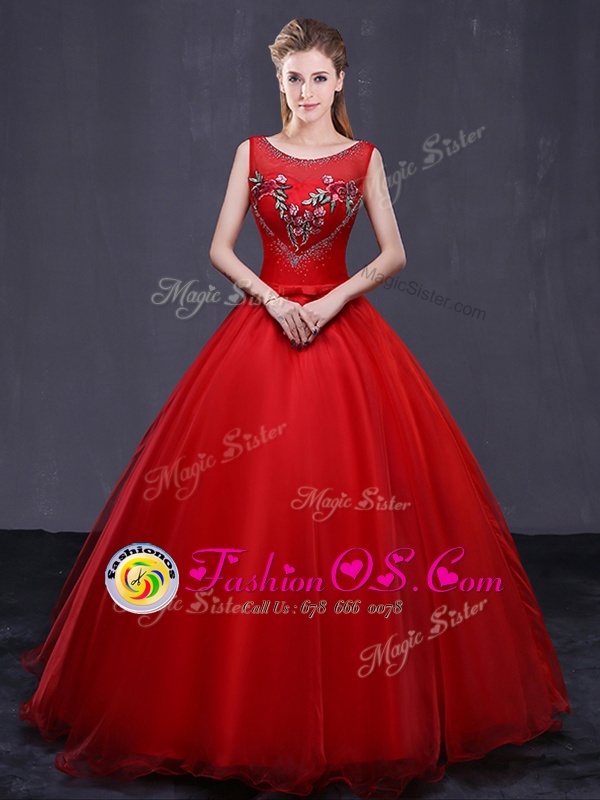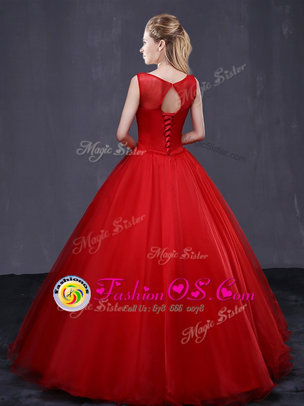 Floor Length Red Sweet 16 Quinceanera Dress Scoop Sleeveless Lace Up