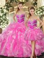 Floor Length Rose Pink Sweet 16 Dress Organza Sleeveless Beading and Ruffles