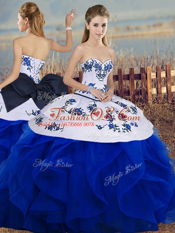 Floor Length Royal Blue 15th Birthday Dress Sweetheart Sleeveless Lace Up
