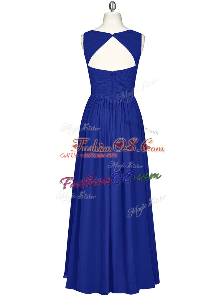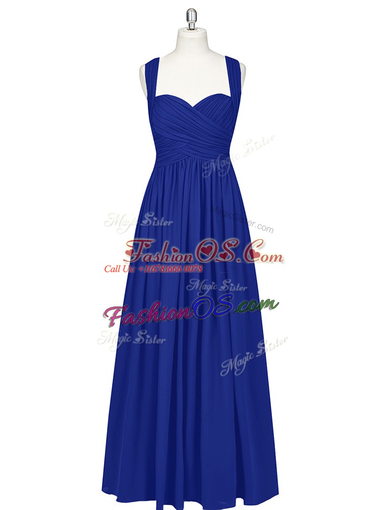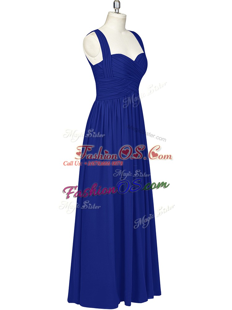 Floor Length Royal Blue Evening Dress Straps Sleeveless Zipper