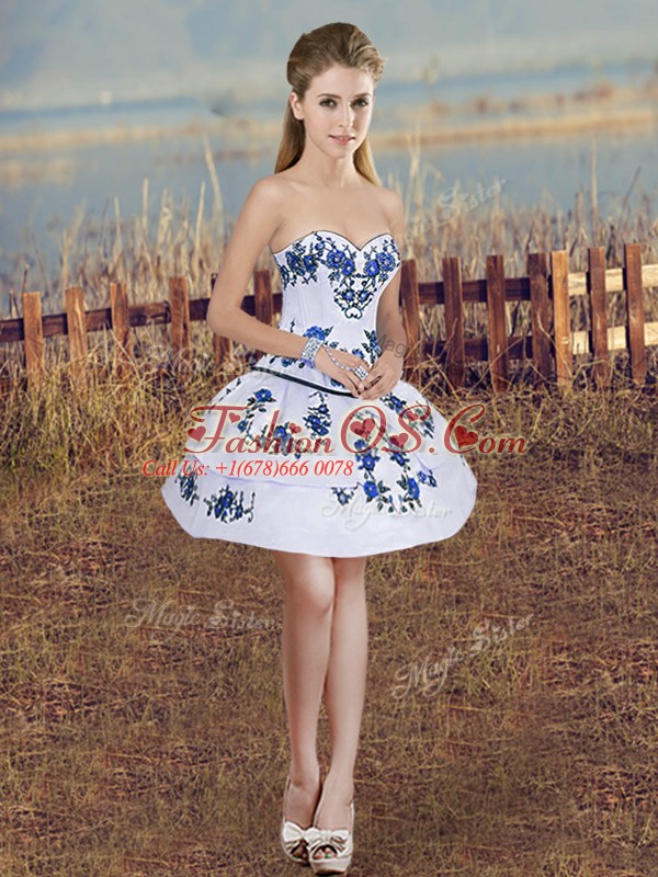 Floor Length Royal Blue Quince Ball Gowns Tulle Sleeveless Embroidery and Ruffles and Bowknot