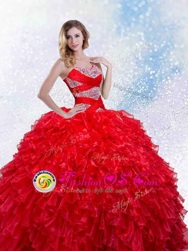 Floor Length Royal Blue Sweet 16 Dress Organza Sleeveless Beading and Ruffles