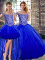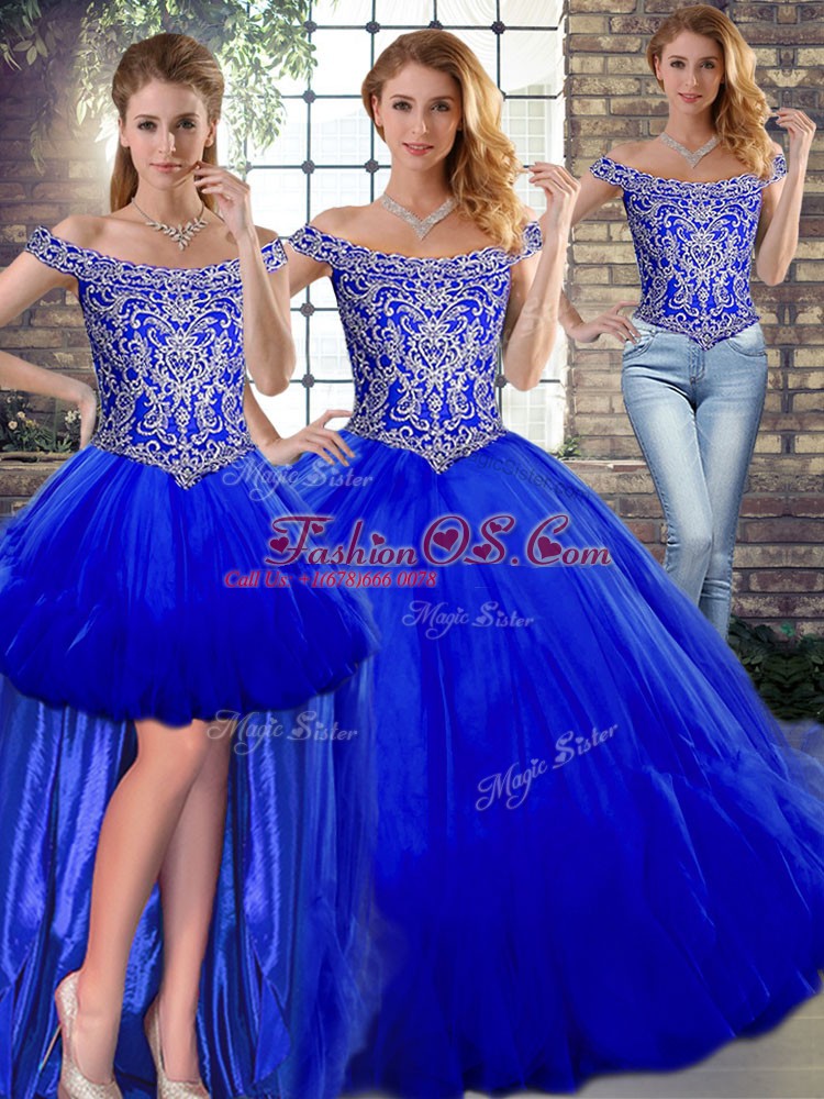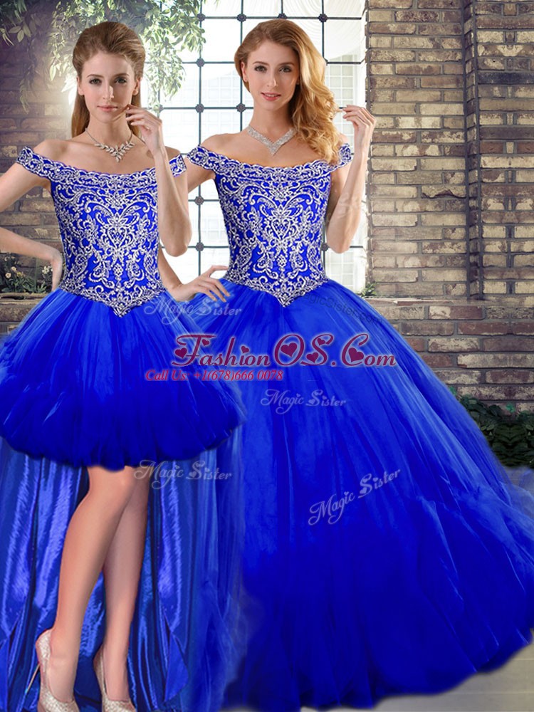 Home >  Quinceanera Dresses >  Detachable Quinceanera Skirts > Floor Length Royal Blue Sweet 16 Dress Tulle Sleeveless Beading and Ruffles