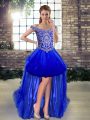Floor Length Royal Blue Sweet 16 Dress Tulle Sleeveless Beading and Ruffles