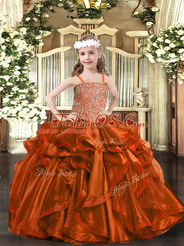 Floor Length Rust Red Child Pageant Dress Straps Sleeveless Lace Up