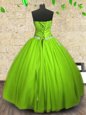 Floor Length Sweet 16 Dress Tulle Sleeveless Appliques and Ruching