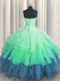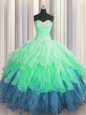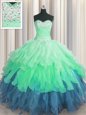 Floor Length Turquoise Quinceanera Dresses Organza Sleeveless Beading and Ruffles