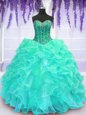Floor Length Turquoise Sweet 16 Quinceanera Dress Sweetheart Sleeveless Lace Up