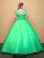 Floor Length Turquoise Vestidos de Quinceanera Scoop Short Sleeves Lace Up