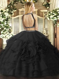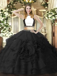Floor Length Two Pieces Sleeveless Black 15th Birthday Dress Zipper
