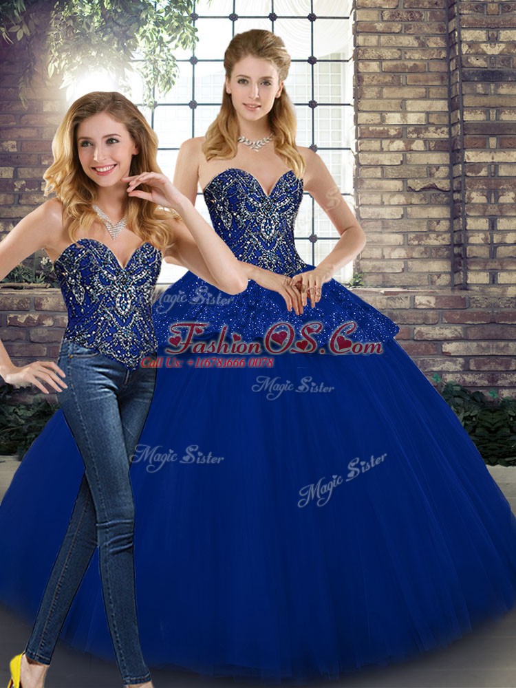 Floor Length Two Pieces Sleeveless Royal Blue 15 Quinceanera Dress Lace Up