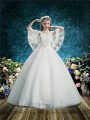 Floor Length White Flower Girl Dress Tulle Half Sleeves Lace