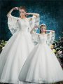 Floor Length White Quinceanera Dress Tulle Half Sleeves Lace
