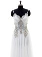 Floor Length White Wedding Gown Chiffon Sleeveless Beading and Appliques