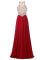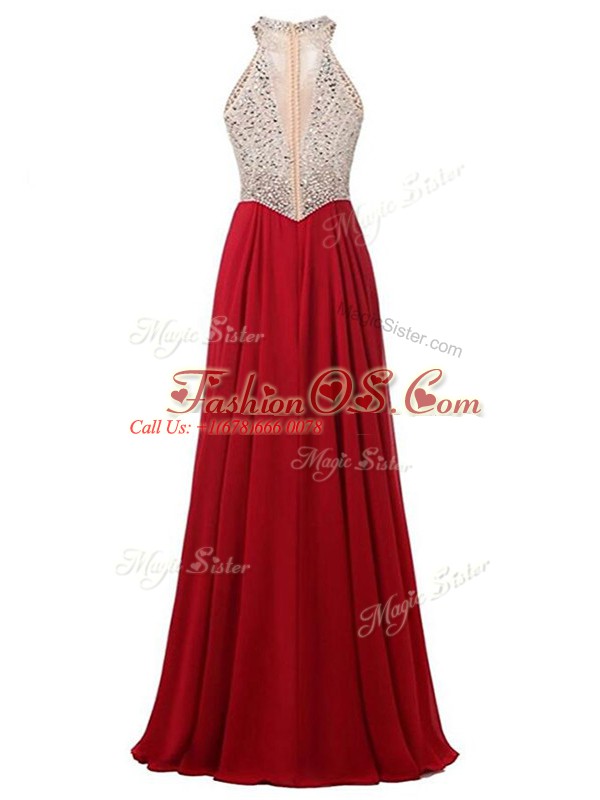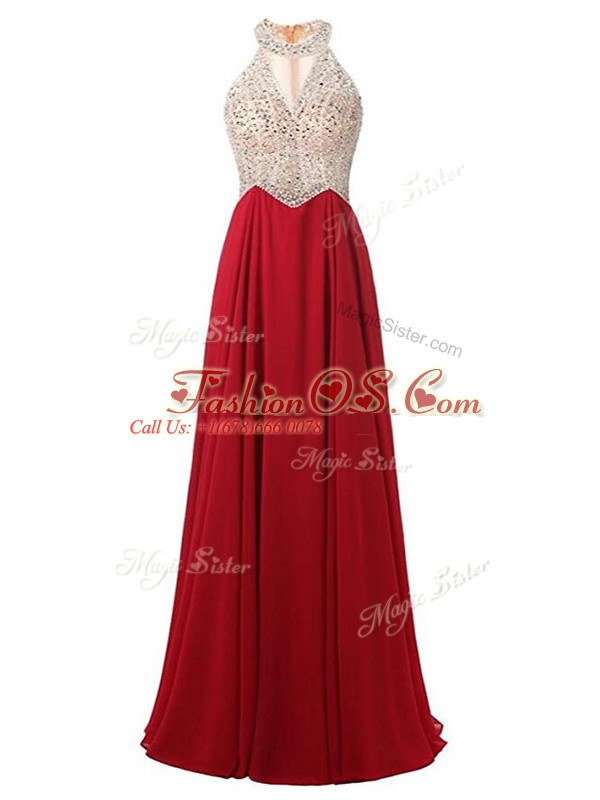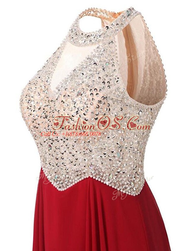 Floor Length Wine Red Prom Evening Gown Chiffon Sleeveless Beading