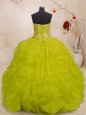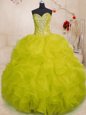 Floor Length Yellow Green 15th Birthday Dress Sweetheart Sleeveless Lace Up