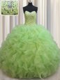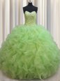 Floor Length Yellow Green Vestidos de Quinceanera Sweetheart Sleeveless Lace Up