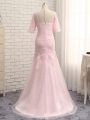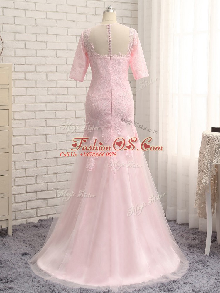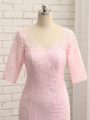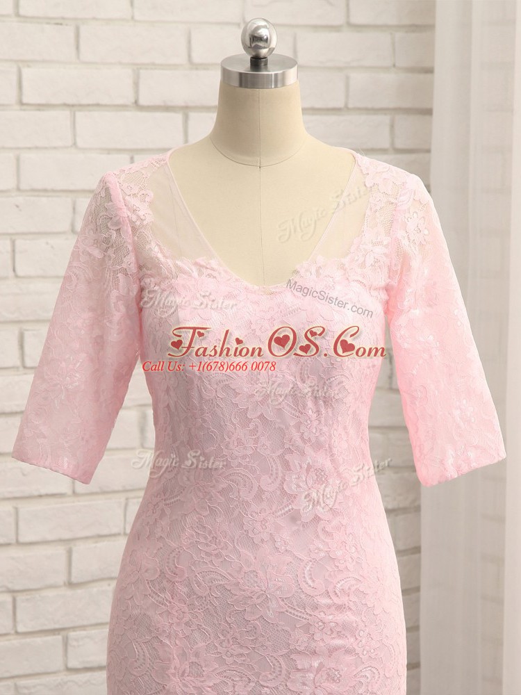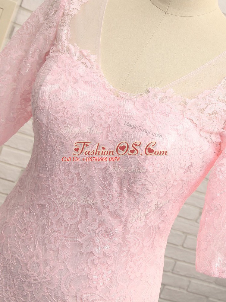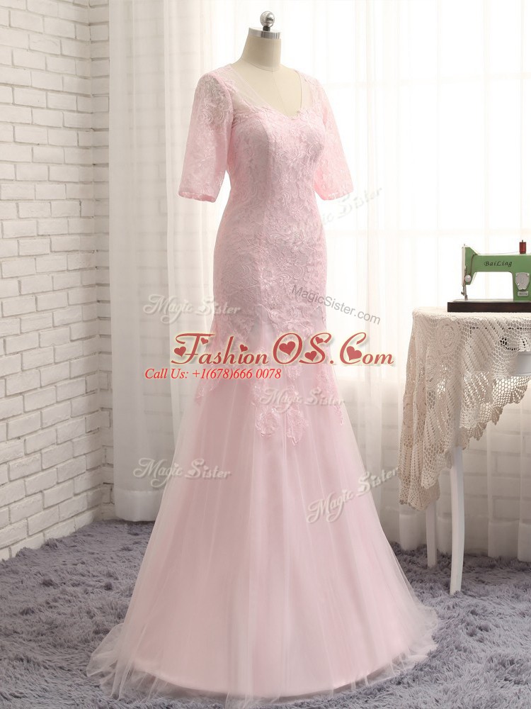 Floor Length Zipper Mother Of The Bride Dress Baby Pink for Prom and Military Ball and Beach with Lace and Appliques