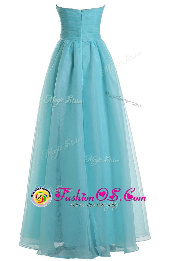 Floor Length Zipper Prom Dress Blue and In for Prom with Appliques