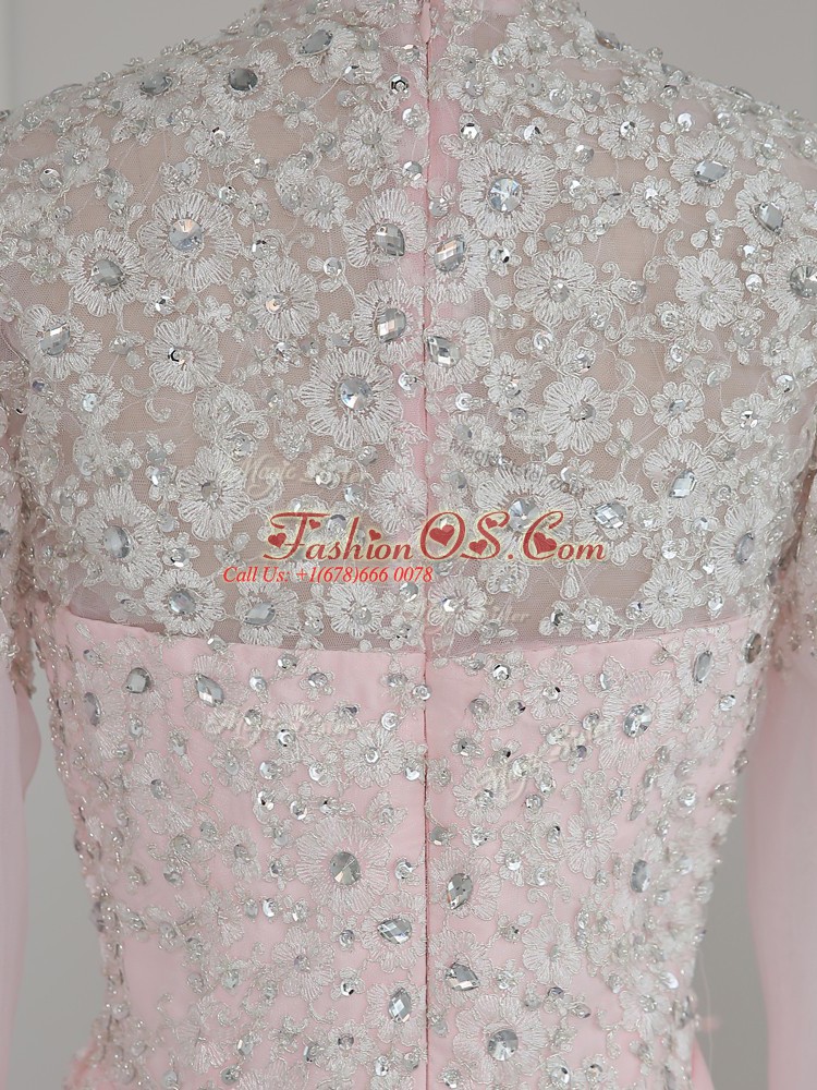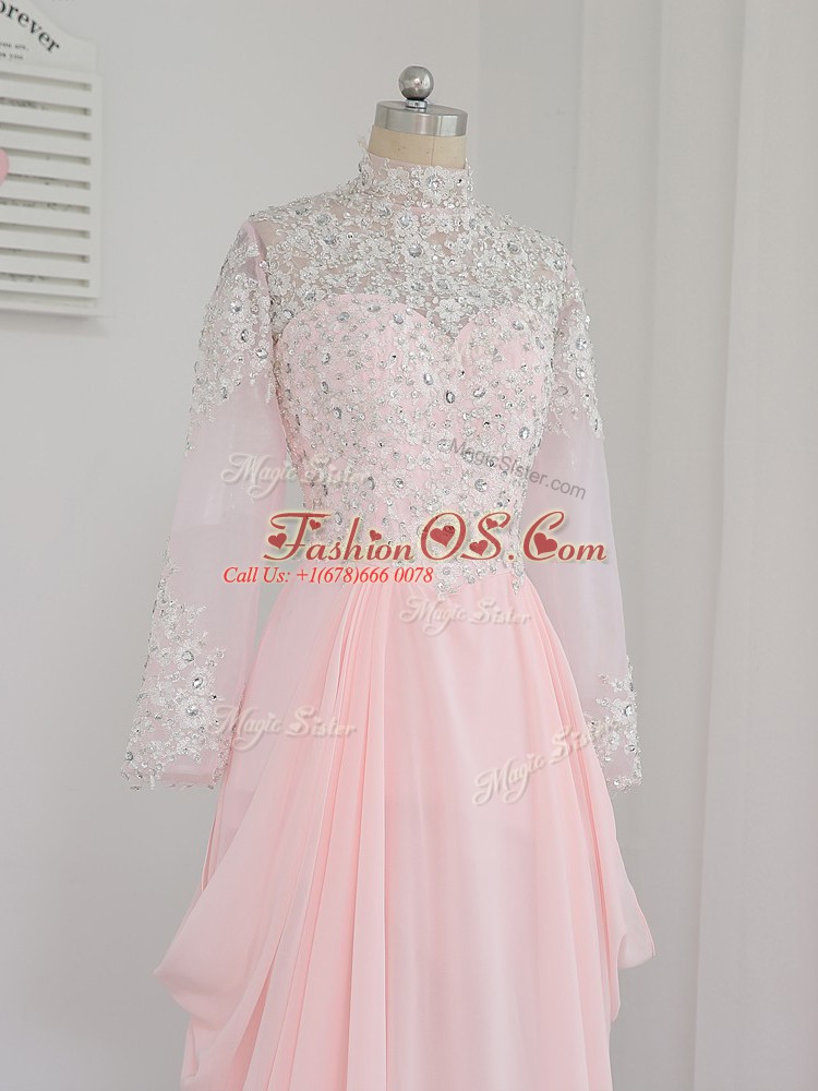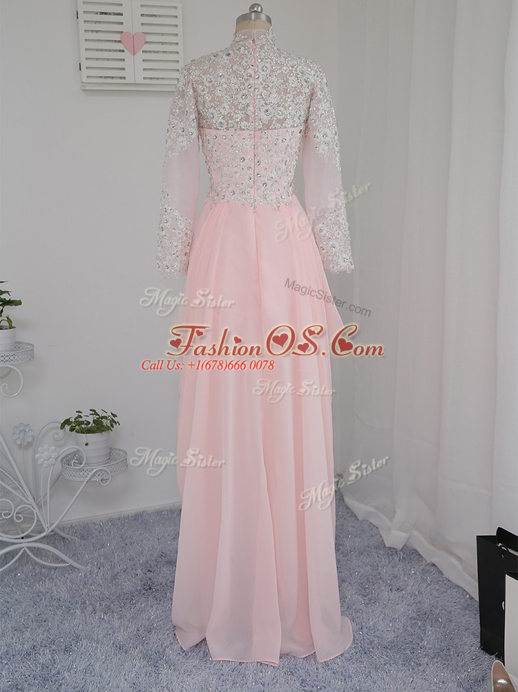Floor Length Zipper Prom Dresses Baby Pink for Prom and Party and Military Ball with Beading