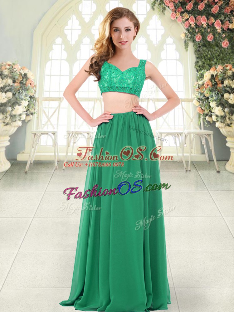 Floor Length Zipper Prom Party Dress Green for Prom and Party with Beading and Lace