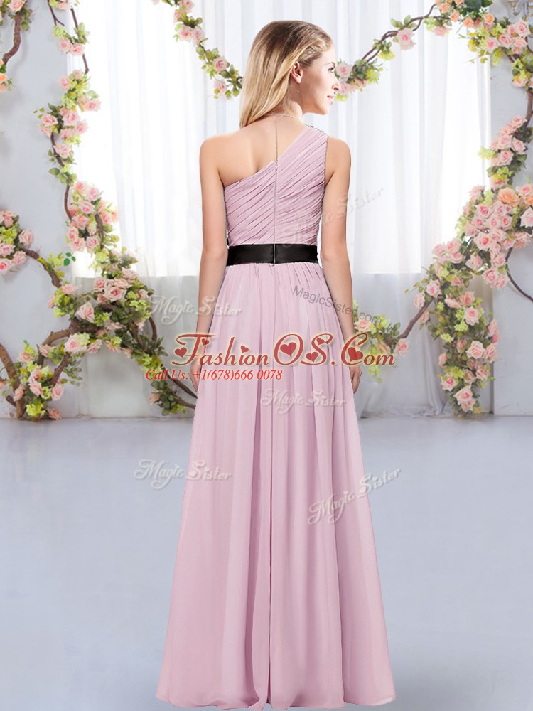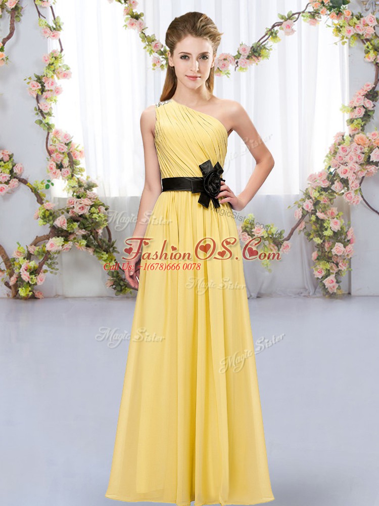 Floor Length Zipper Quinceanera Dama Dress Gold for Wedding Party with Belt