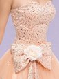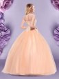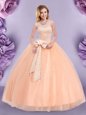 Home >  Quinceanera Dresses >  Cheap Quinceanera Dresses > Floor Length Zipper Sweet 16 Dress Peach and In for Military Ball and Sweet 16 and Quinceanera with Beading and Bowknot