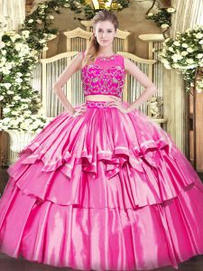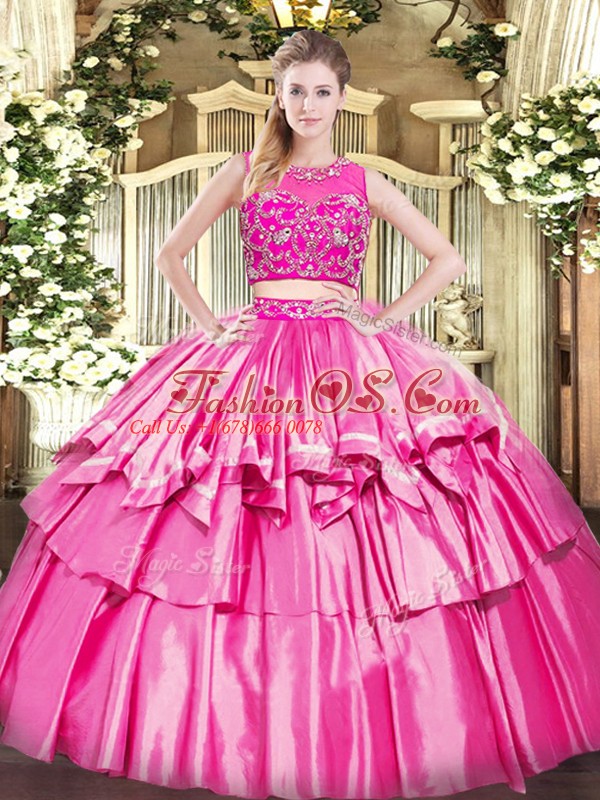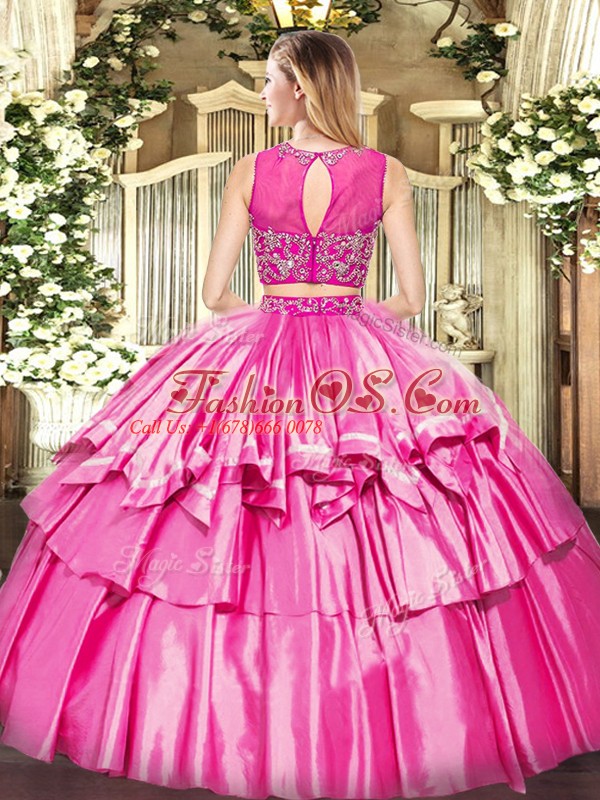 Home >  Quinceanera Dresses >  Best Quinceanera Dresses > Floor Length Zipper Vestidos de Quinceanera Rose Pink for Military Ball and Sweet 16 and Quinceanera with Beading and Ruffled Layers