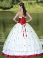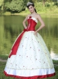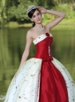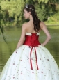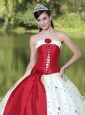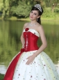 This fashional ball gown quinceanera dress is extremely attractive whenever you show up. Neat bodice is decorated by exquisite corset design on the front and the back. Latest design of the skirt features a petal style on the side of the dress. Wine red and white satin create a difference tone when you look down to the dress. What a elegant and eye-catching gown!