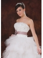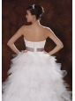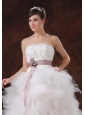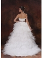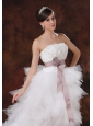 Flowers Decorate High-low Wedding Dress With Brush Train Belt