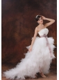 Home >  Wedding Dresses >  Popular Wedding Dresses > Flowers Decorate High-low Wedding Dress With Brush Train Belt