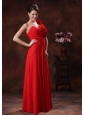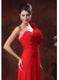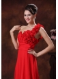 Flowers Decorate Shoulder Red Prom Dress In Bessemer Alabama
