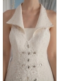 This gown features special lace collar and bodice that is encrusted with crystals and stones on the front. The bottom of the skirt has lovely kace details and a big train. A bit retro and a lot gorgeous! You will look like a queen in the pretty dress.
