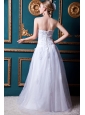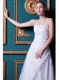 Formal A-line Strapless Floor-length Tulle and Taffeta Appliques Wedding Dress