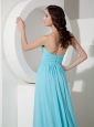 Formal Aqua Blue Empire Sweetheart Evening Dress  Chiffon Beading Brush Train