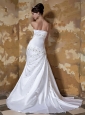 Home >  Wedding Dresses >  Affordable Wedding Dresses > Formal Column / Sheath Sweetheart Court Train Elastic Woven Satin Appliques Wedding Dress