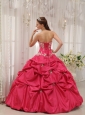 Formal Coral Red Quinceanera Dress Sweetheart Taffeta Appliques Ball Gown