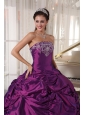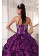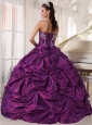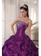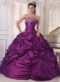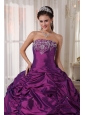 Formal Eggplant Purple Quinceanera Dress Strapless Taffeta Embroidery Ball Gown