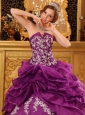 Formal Fuchsia Quinceanera Dress Strapless Organza Appliques Ball Gown