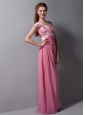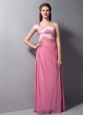 Formal Pink One Shoulder Bridesmaid Dress with Beading