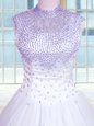 Four Piece Blue Organza Lace Up Ball Gown Prom Dress Sleeveless Floor Length Beading and Ruffles and Ruching