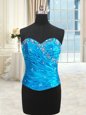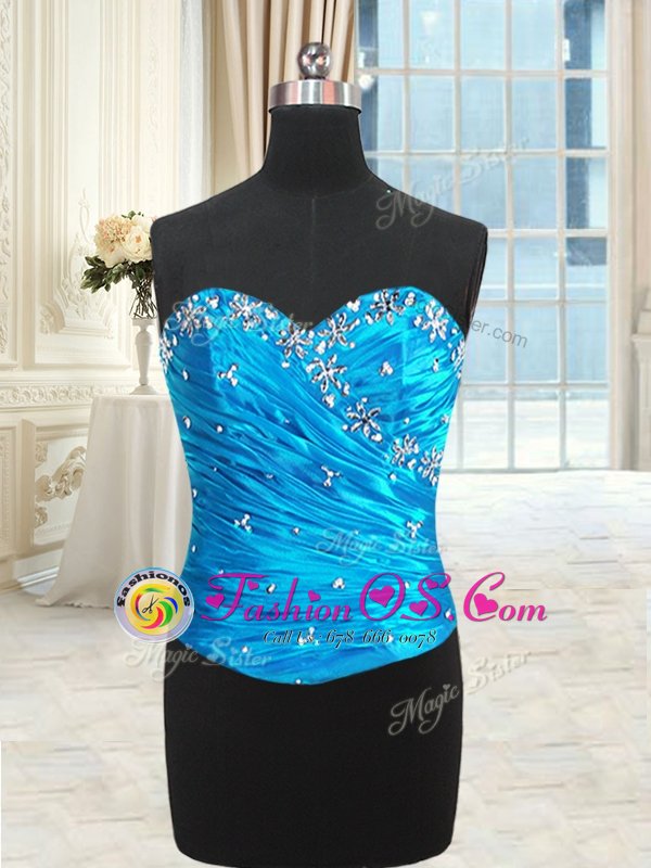 Home >  Quinceanera Dresses >  Detachable Quinceanera Skirts > Four Piece Blue Organza Lace Up Ball Gown Prom Dress Sleeveless Floor Length Beading and Ruffles and Ruching
