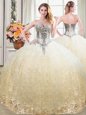 Four Piece Champagne Tulle and Lace Lace Up Vestidos de Quinceanera Sleeveless Floor Length Beading and Lace