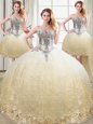 Home >  Quinceanera Dresses >  Detachable Quinceanera Skirts > Four Piece Champagne Tulle and Lace Lace Up Vestidos de Quinceanera Sleeveless Floor Length Beading and Lace