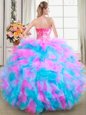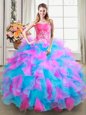 Four Piece Floor Length Ball Gowns Sleeveless Black and Red Sweet 16 Dress Lace Up