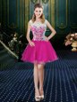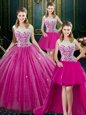 Home >  Quinceanera Dresses >  Beautiful Quinceanera Dresses > Four Piece Fuchsia Sleeveless Lace Floor Length 15th Birthday Dress