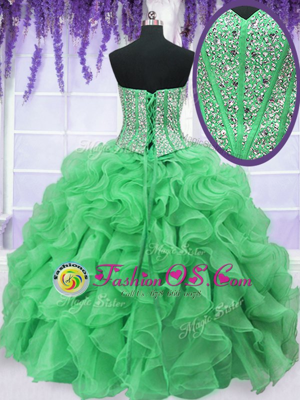 Four Piece Green Lace Up Sweetheart Beading and Ruffles Quince Ball Gowns Organza Sleeveless